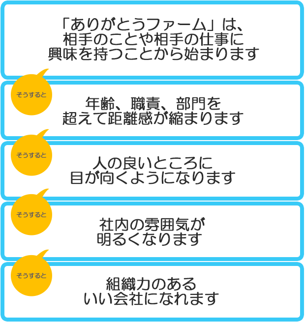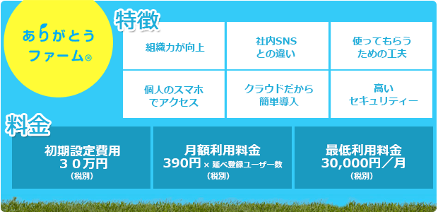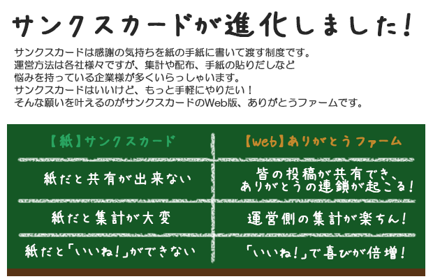 ありがとうファームシステム紹介サイトです。社内にありがとうが飛び交いキュっと社内が一体化するシステム